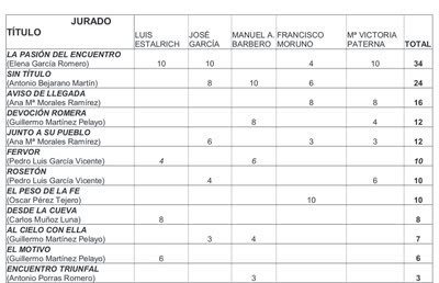 Ahí os dejo la tabla de puntuaciones y todas las fotos presentadas para que recordéis una romería todavía fresca en las meninges.