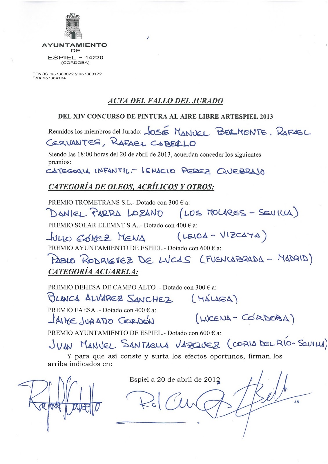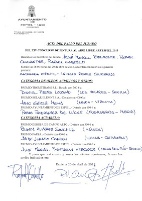 Ahí os dejo el acta del fallo del jurado y las fotos, incluidas las de la exposición que todavía permanece abierta en el Ayuntamiento.