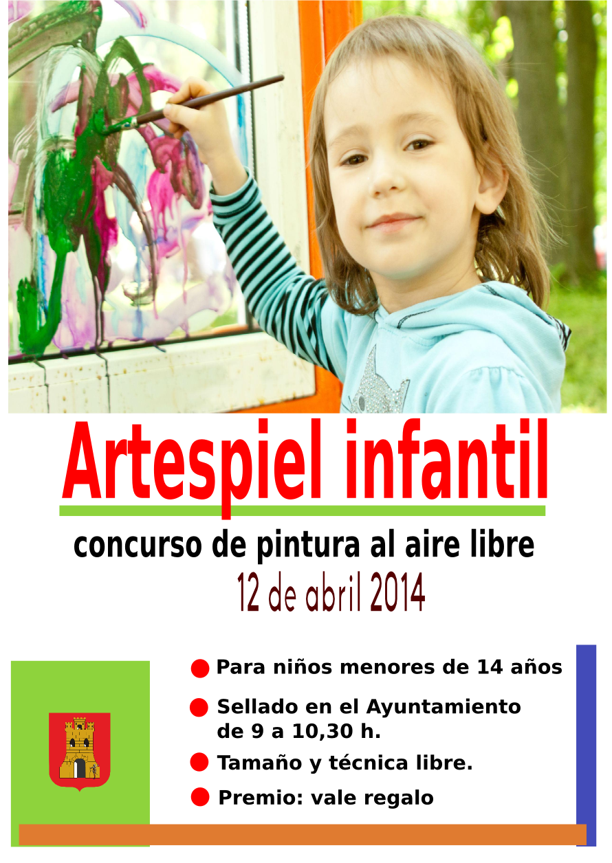 Cartel del décimoquinto concurso de pintura al aire libre ARTESPIEL 2014, organizado por la Concejalía de Cultura y patrocinado por el Ayuntamiento de Espiel, Faesa, SP Group, Peluquería Francisco de la Torre y Dehesa de Campo Alto.